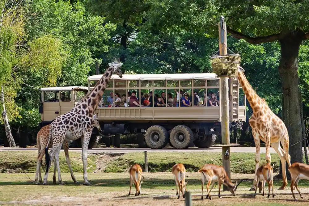 This zoological park, which covers 150 of the 380 hectares of the estate, presents approximately 1,500 animals belonging to approximately 95 species of mammals, 28 species of birds and 30 species of reptiles. It also presents amphibians and invertebrates. It includes a safari section, which can be visited by car, a more traditional pedestrian section and a botanical park comprising several themed gardens: autumn gardens, perfume gardens, English gardens, labyrinth, rose garden, and a French inverted parterre designed by Claude Desgots.